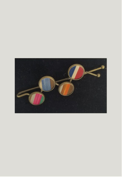 Barrette en marquèterie de paille pour méche à 4 cabochons. avec paille de toutes les couleurs.