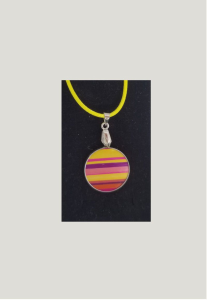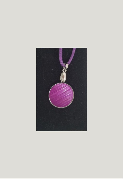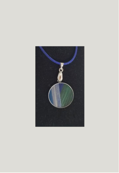 Pendentif à petit cabochon recouvert de marqueterie de paille. Diamétre du cabochon 2 cm.