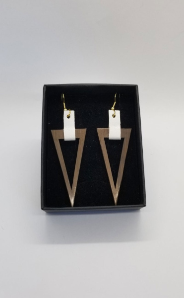 Boucles d'oreilles Triangles marrons attaches blanches