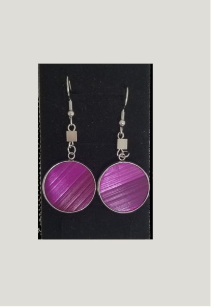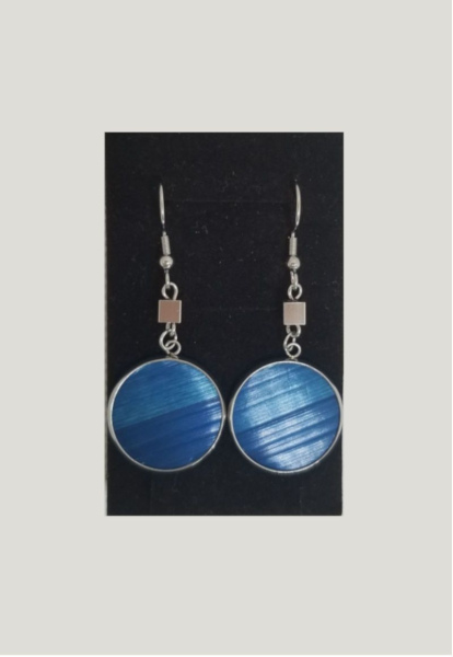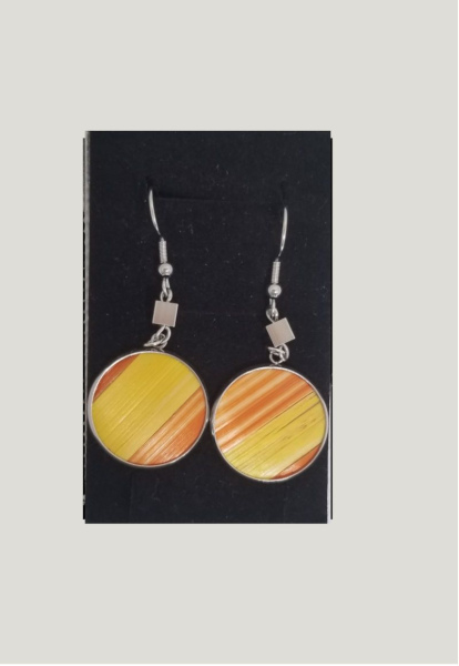 Boucles d'oreilles en acier inoxydable, forme ronde, avec cabochon recouvert de marquèterie de paille de différentes couleurs