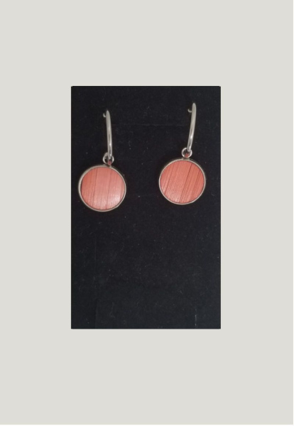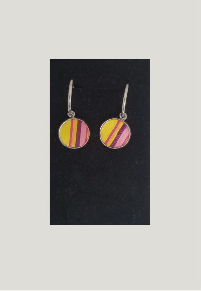 Boucles d'oreilles en acier inoxydable, forme petite créole, avec cabochon recouvert de marquèterie de paille de différentes couleurs