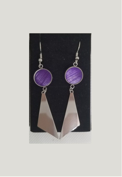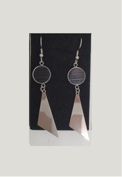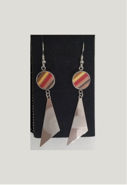 Boucles d'oreilles en acier inoxydable, forme triangle, avec cabochon recouvert de marquèterie de paille de différentes couleurs